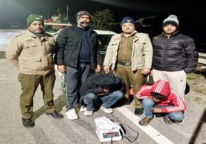 पुलिस टीम ने वाहन की तलाशी ली तो कार से 949 ग्राम चरस बरामद हुई। पुलिस ने तुरंत चरस को जब्त कर कार में सवार दोनों युवकों को गिरफ्तार कर लिया। पकड़े गए दोनों युवक हरियाणा के गोहाना क्षेत्र के निवासी हैं। पुलिस ने आरोपियों के खिलाफ थाना घुमारवीं में मादक पदार्थ अधिनियम के तहत केस दर्ज कर लिया है।