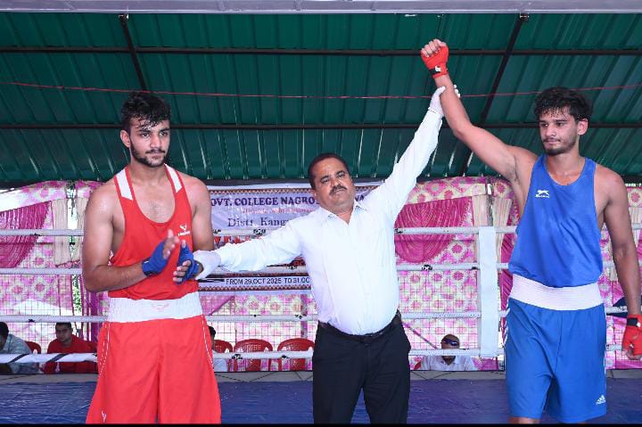 नगरोटा बगवां। राजकीय उत्कृष्ट महाविद्यालय नगरोटा बगवां में चल रही हिमाचल प्रदेश विश्वविद्यालय (HPU) शिमला की अंतर महाविद्यालय बॉक्सिंग (Boxing) चैंपियनशिप (Championship) के दूसरे दिनेश भी खिलाड़ियों (Players) ने रिंग में दमखम दिखाया। दिनभर चले मुकाबलों में विभिन्न भार श्रेणियों में प्रतिभागियों ने शानदार प्रदर्शन किया।